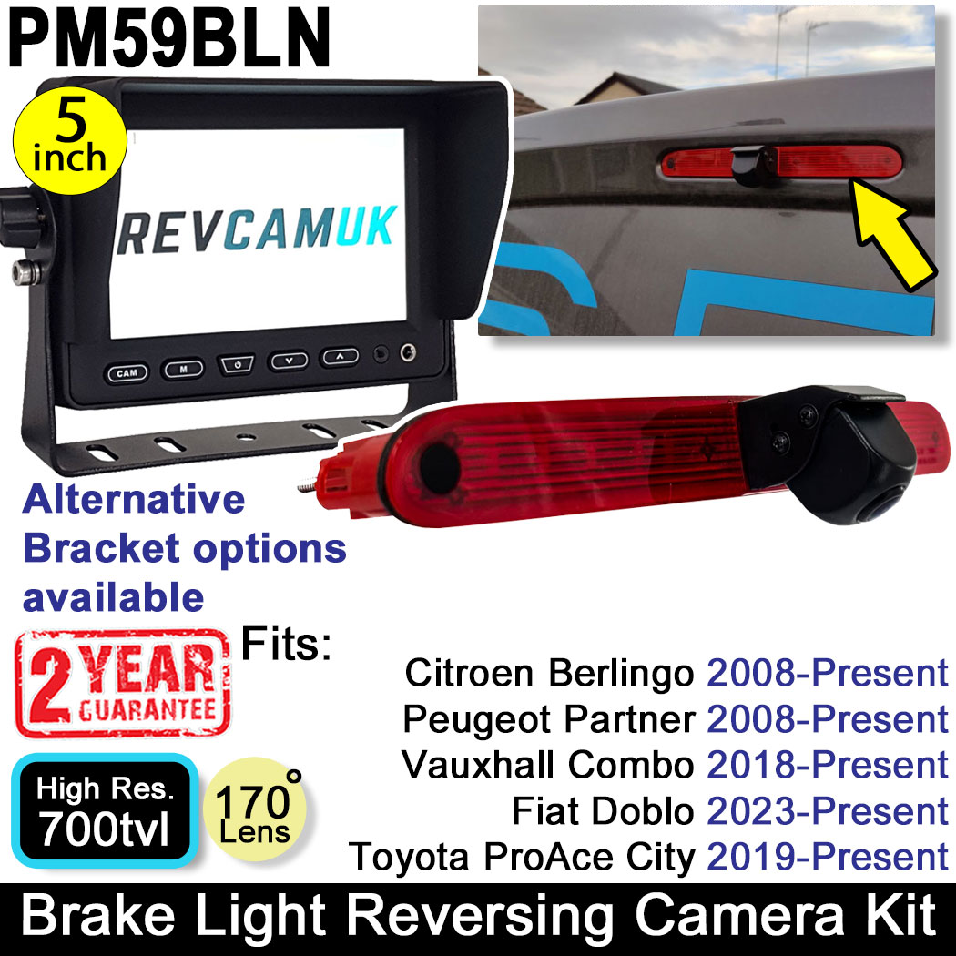 5" Monitor and Brake Light Reversing Camera Kit to fit Citroen Berlingo, Peugeot Partner, Vauxhall Combo, Fiat Doblo and Toyota Proace City vans | PM59BLN