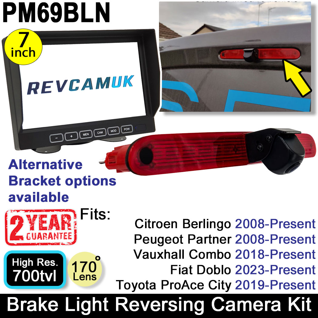 7" Monitor and Brake Light Reversing Camera Kit to fit Citroen Berlingo, Peugeot Partner, Vauxhall Combo and Toyota Proace City vans | PM69BLN