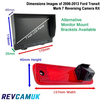 Reversing Camera Kit to fit Mark 7 Ford Transit Vans built between 2006 and 2013. Two Year Guarantee. High Resolution 4089 700tvl Brake Light Camera Image Sensor, and digital hi-res LCD 7" Monitor. Lifetime support and fast dispatch from the forums favourite Reversing Camera Specialists. Great Value System for your van.